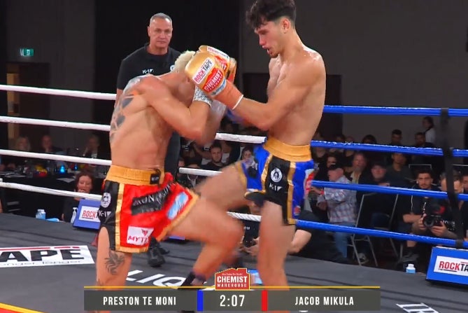 ニュージーランド人のロックは、ISKAニュージーランド南島ミドル級(-75kg)王者で18戦12勝(10KO)4敗2分とこちらもKO率が高い。この選手もテクニシャンタイプで、パンチからのヒザ蹴りをボディへ突き刺す印象だ。
