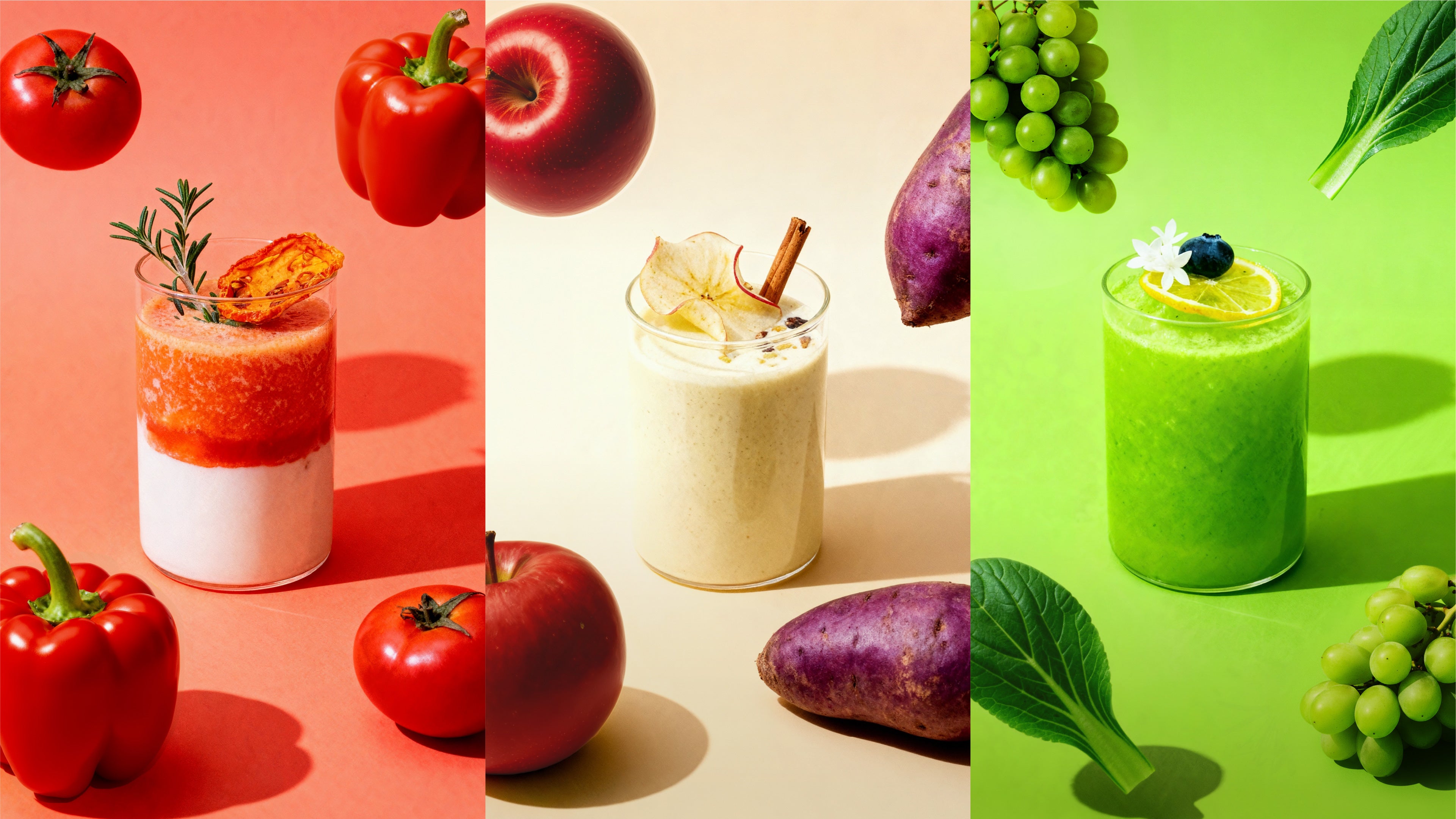 野菜とフルーツをベースにしたドリンクで、健康的なライフスタイルを