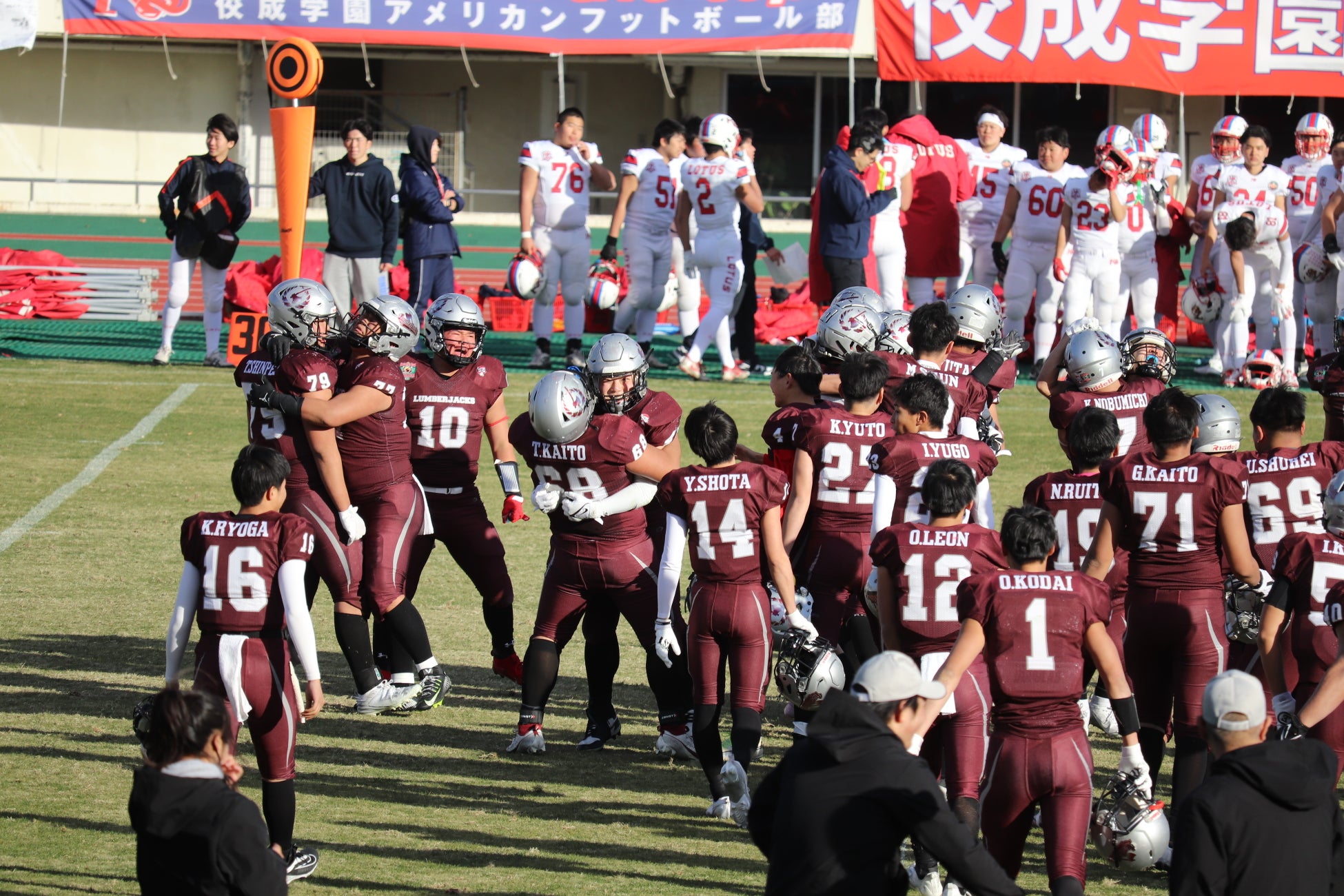 チームは関西代表として出場し、9年連続で決勝戦に進出している関東代表の佼成学園高等学校と対戦。試合は第3クオーターでエースRBの奥村倖大選手(3年)が2つのタッチダウンを決めて逆転し、その後も堅い守りで佼成学園の攻撃を封じ、24対10で勝利しました。
