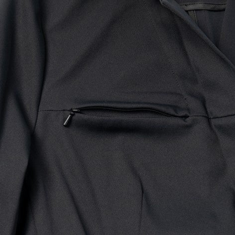 特徴:ジャケットは、計4つのポケットがあり、収納力抜群。左胸ポケットにはペン挿しを搭載、右胸ポケットにはファスナーがついており、物が落ちない仕様にしました。パンツはウエスト後ろをゴムにし、動いても座ってもストレスなく快適に過ごせます。独自開発の新素材「ultimex」を用い、伸縮性・耐久性・撥水性・速乾性、しわになりにくいイージーケアに加え、365日洗濯機で丸洗いできます。