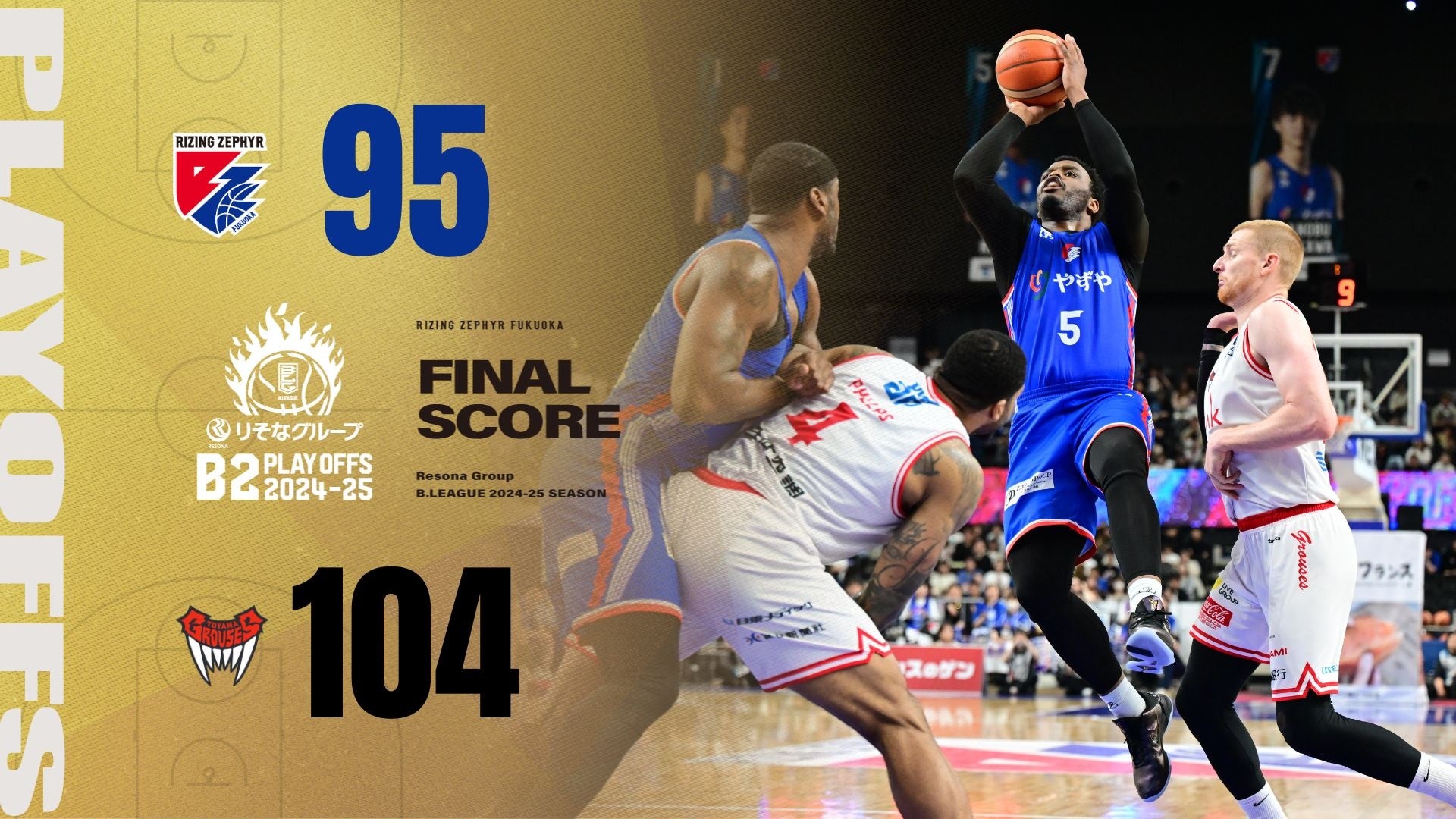 2025年5月11日(日)に開催した、りそなグループ B2 PLAYOFFS 2024-25 セミファイナル【ライジングゼファーフクオカ vs.富山ブローウィンズ】GAME2は、“福岡 95-104 富山”で福岡の敗戦となり、7年ぶりのB1昇格を逃し、5月17日(土)から開催される3位決定戦に回ることになりました。