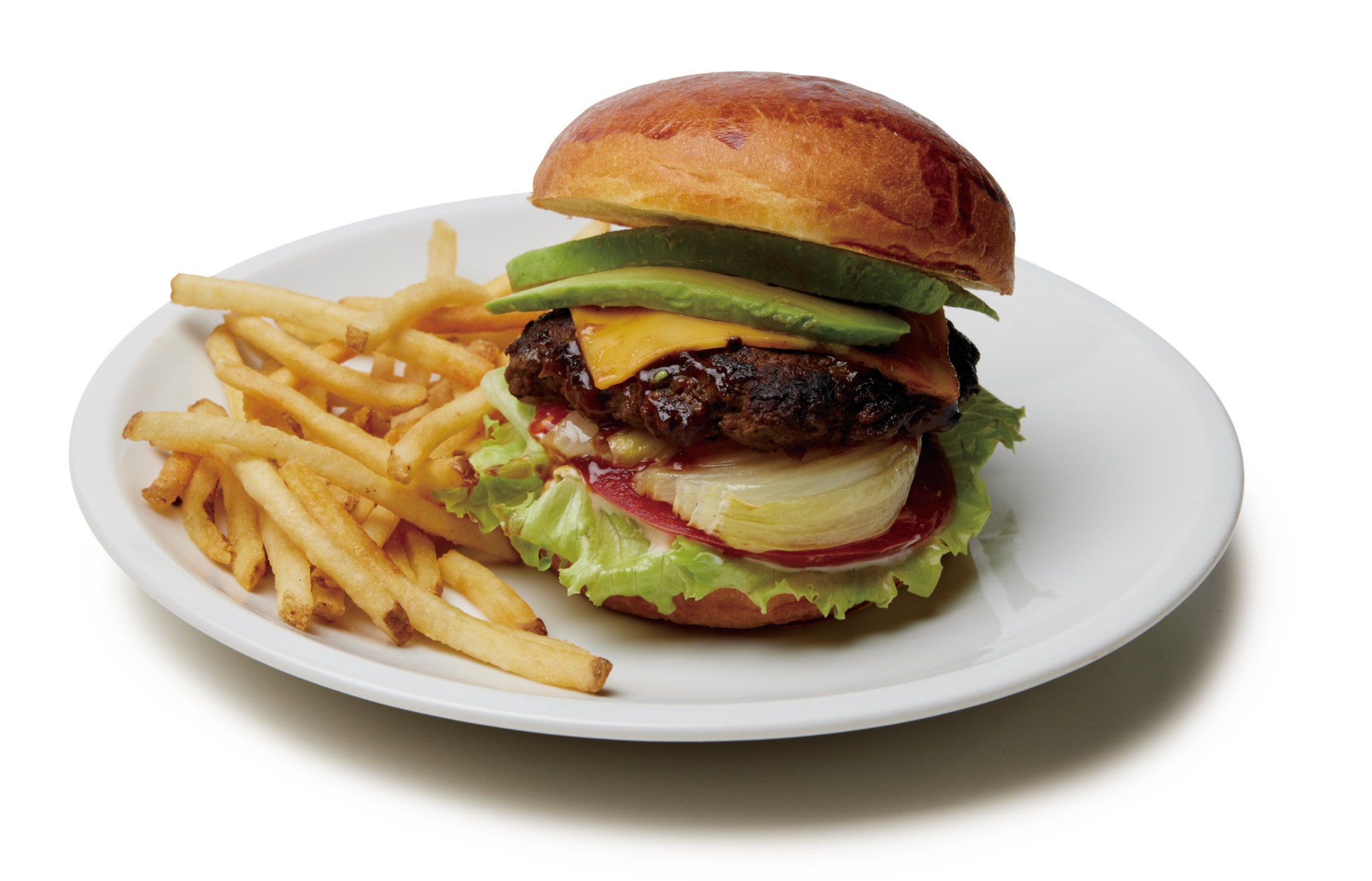 アメリカのダイナーで出てくるような一皿は、丸の内店でたびたび登場しては、人気を集めてきたメニュー。すべてご注文いただいてから仕上げます。ふわふわとしたブリオッシュ生地のバンズに、アボカド、チェダーチーズ、牛100%のパテ、オーブンで焼いた玉ネギ、トマト、レタスをサンド。スモーキーなBBQソースで仕上げています。カリカリに揚げたポテトも一緒にどうぞ。