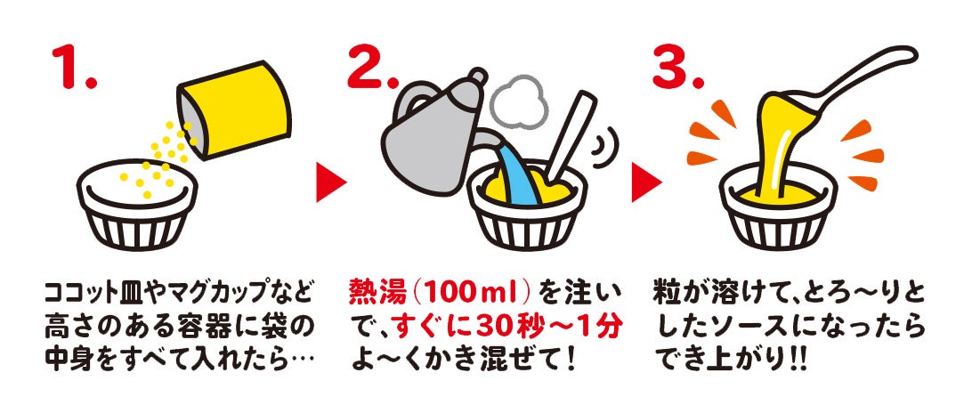 (1)お湯を注いで混ぜるだけでチーズソースがとろ~り伸びて、冷めてもトロトロ感をキープ!