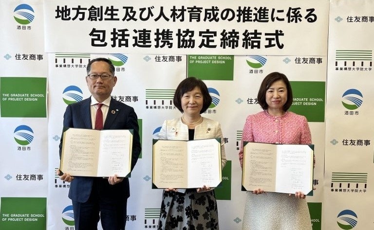 山形県酒田市(市長:矢口明子)、住友商事株式会社(本社:東京都千代田区、代表取締役社長執行役員 CEO:兵頭誠之)、学校法人先端教育機構 事業構想大学院大学(本部:東京都港区 学長:田中里沙)の三者は、酒田市における地方創生及び人材育成の推進に係る包括連携協定を、2024年3月16日付で締結しました。また、2023年度に共同プロジェクトとして発足した「庄内事業構想プロジェクト研究」の第2期を2024年5月に開始し、新たにプロジェクト研究員の募集を行うことを発表しました。