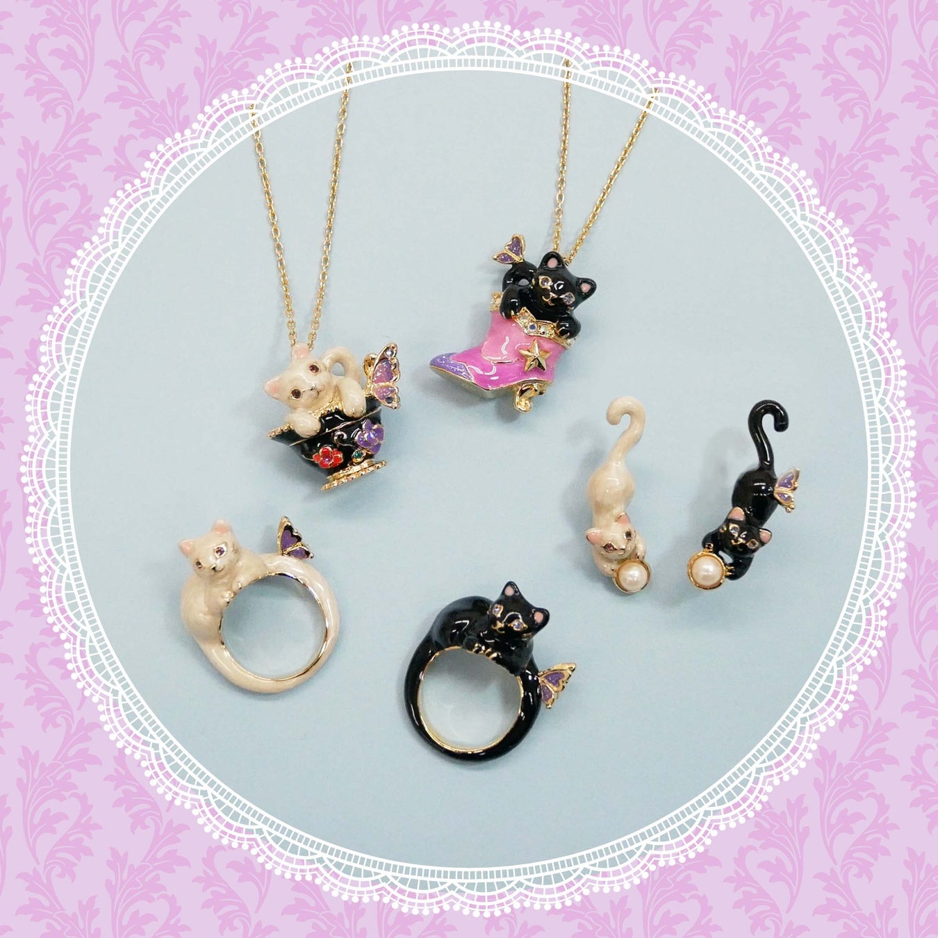 相反するテイストのミックスが魅力なANNA SUIのアクセサリーよりポップで楽しい白猫と黒猫のアイテムが登場。