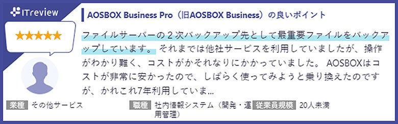 ■「AOSBOX Business Pro」が選ばれている理由 (ITreviewより抜粋)