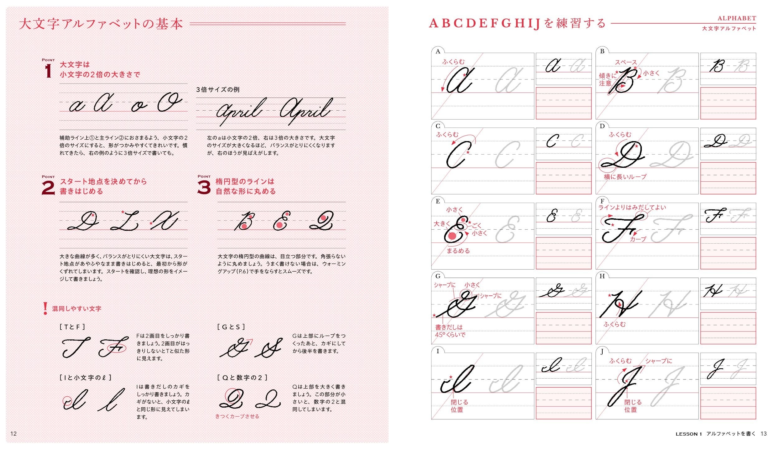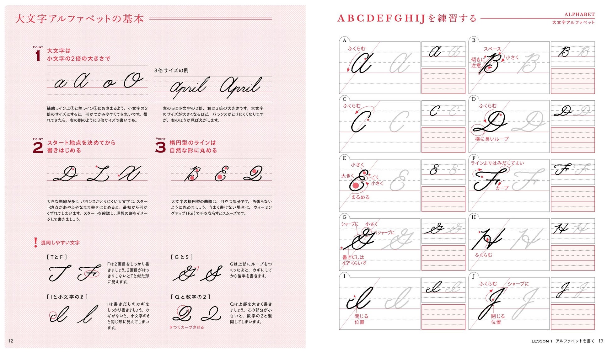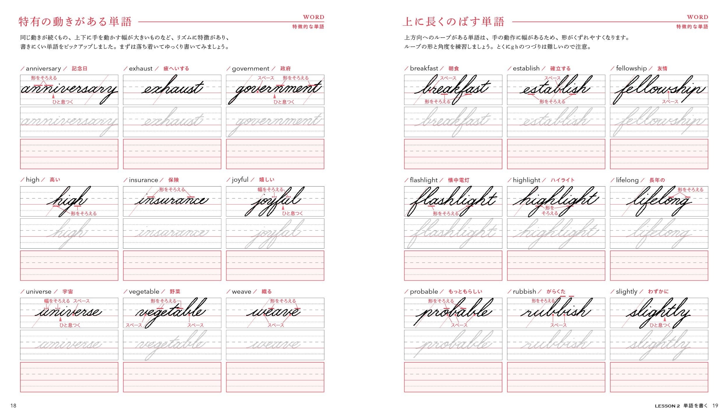 カリグラフィの本はあるけれど、なかなかないのが筆記体専用のレッスンブック。装飾的・美術的な目的の文字と、日ごろの手紙やダイアリー、メッセージカードで活躍する筆記体は違うもの。