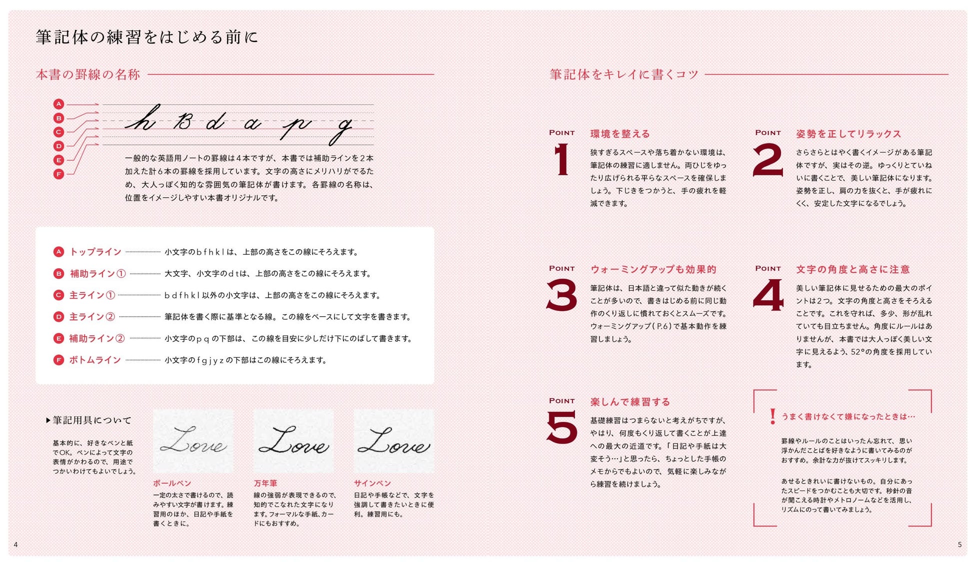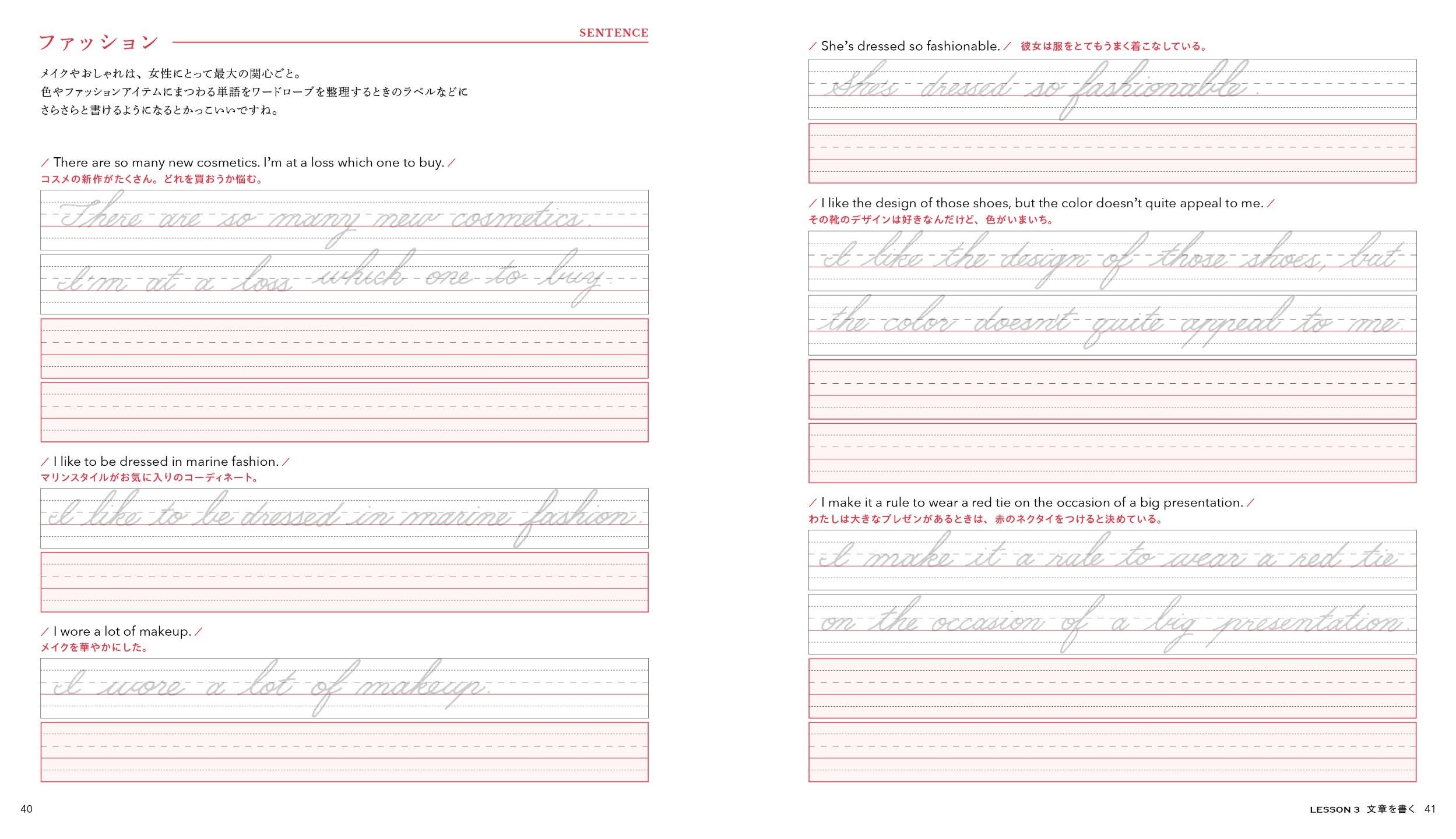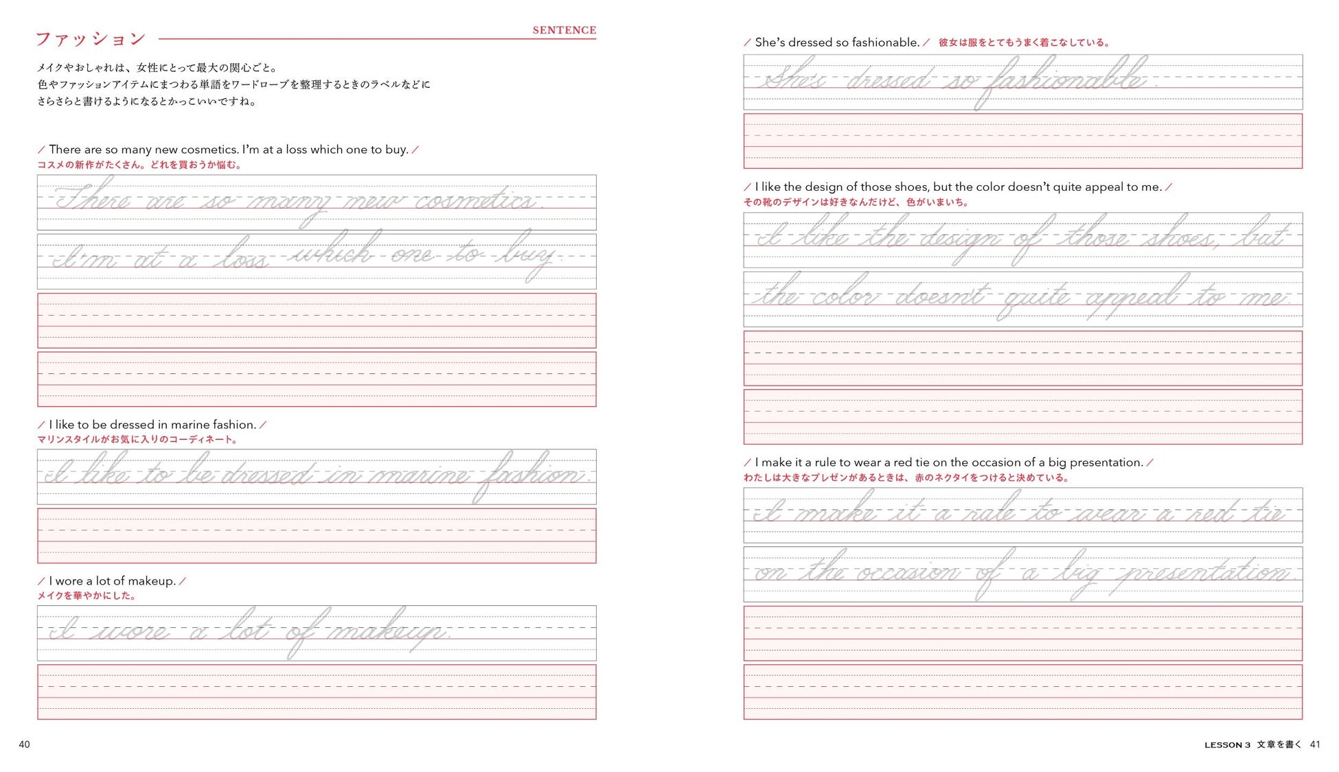 カリグラフィの本はあるけれど、なかなかないのが筆記体専用のレッスンブック。装飾的・美術的な目的の文字と、日ごろの手紙やダイアリー、メッセージカードで活躍する筆記体は違うもの。