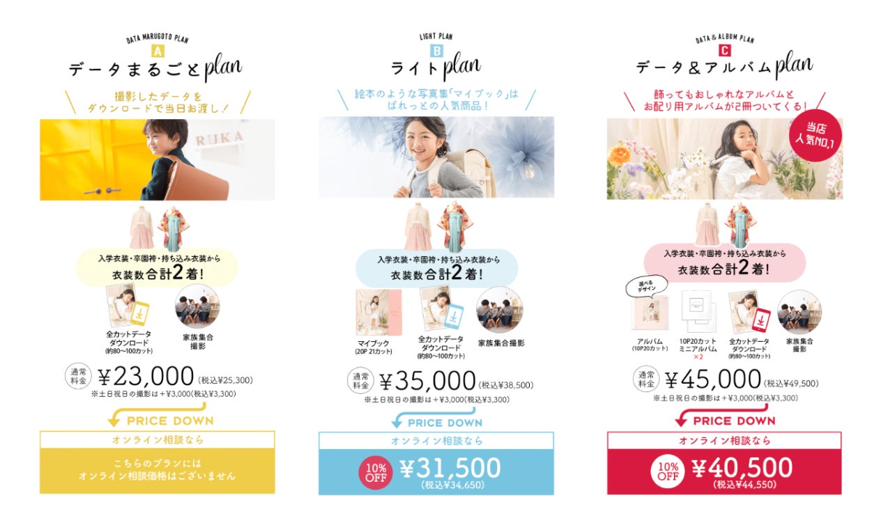 撮影プランはお得でわかりやすいセットプランでご案内しております。