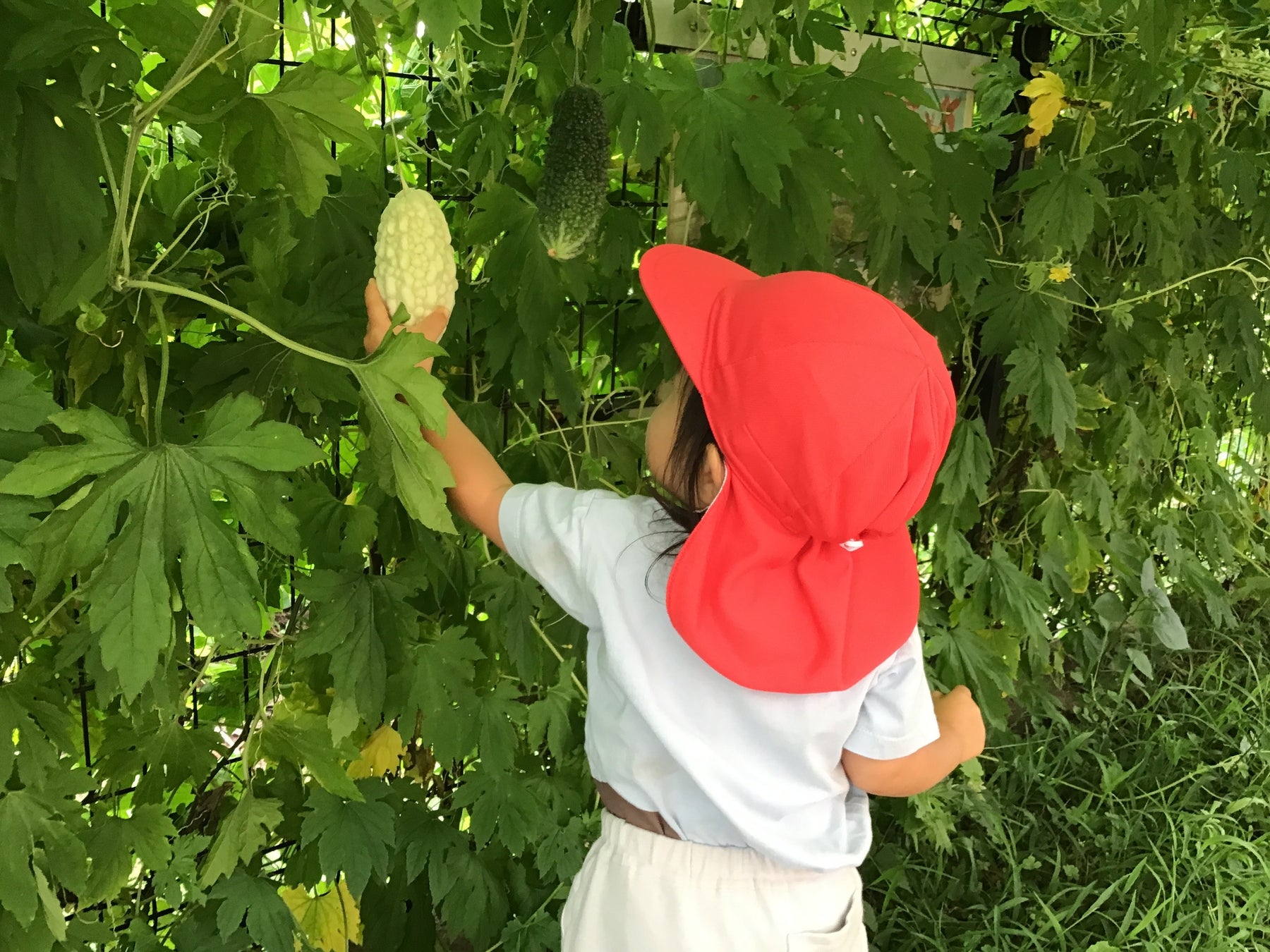 明日葉保育園では、子どもたち自身で小さな種から野菜を栽培し、太陽の光・水・肥料によって野菜がぐんぐん育つことを体験します。自分で野菜を育てることで、食べ物への愛着を持ち、自然の恵みや生産者への感謝の気持ちを育むことができます。