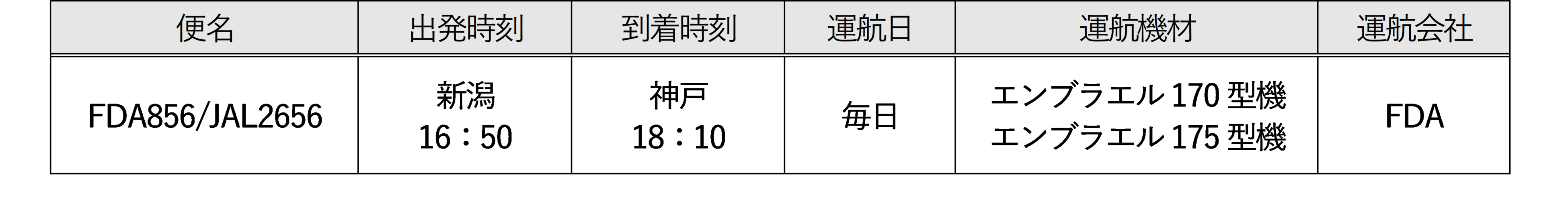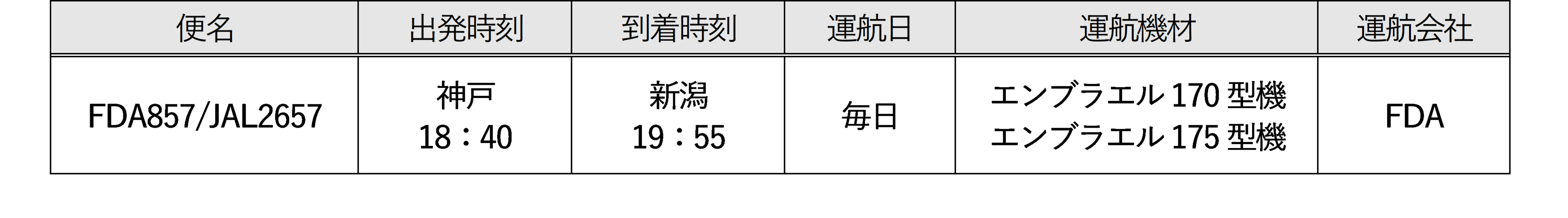 株式会社フジドリームエアラインズ(本社:静岡県静岡市、代表取締役社長:楠瀬 俊⼀、以下「FDA」)と日本航空株式会社(本社:東京都品川区、代表取締役社長:赤坂 祐二、以下「JAL」)は、FDAが新たに就航する神戸=新潟路線とFDAが就航中の名古屋(小牧)=青森、花巻路線において、3月27日(日)ご搭乗分 よりJALコードシェア便を設定します。これにより、FDAが就航しているすべての路線でJALコードシェア便が設定されます。