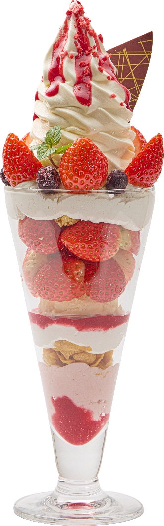 グラスの中に広がる“苺づくし”の層から、ひと口味わうごとに異なるハーモニーが生まれ、最後のひとさじまで飽きることなくお楽しみいただけます。苺好きのために贈る、冬限定の特別なご褒美パフェをどうぞご堪能ください。
