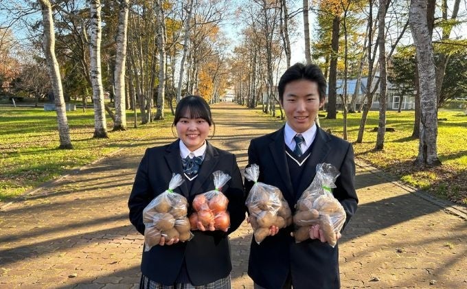 自然溢れる広大な敷地面積を活かし、校内では高校生たちの手で10種類以上の野菜が育てられています。彼らの作る野菜は全道で販売され、美味しく安いと人気となっています。そんな野菜を全国の方にも味わってもらいたいとの高校生たちの願いから、今回の返礼品開発プロジェクトが始まりました。