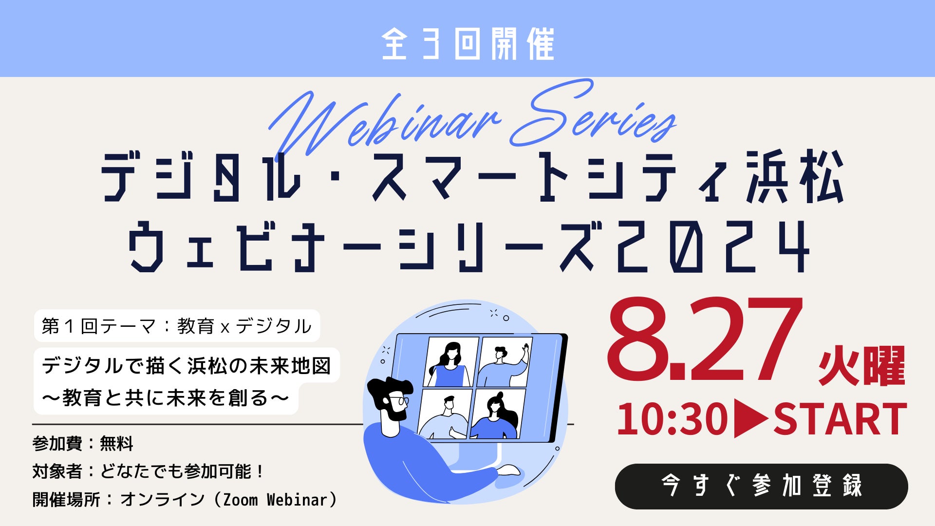 8月27日(火) 10:30スタート!デジタル・スマートシティ浜松 ウェビナーシリーズ2024 第1回テーマ:教育 × デジタル