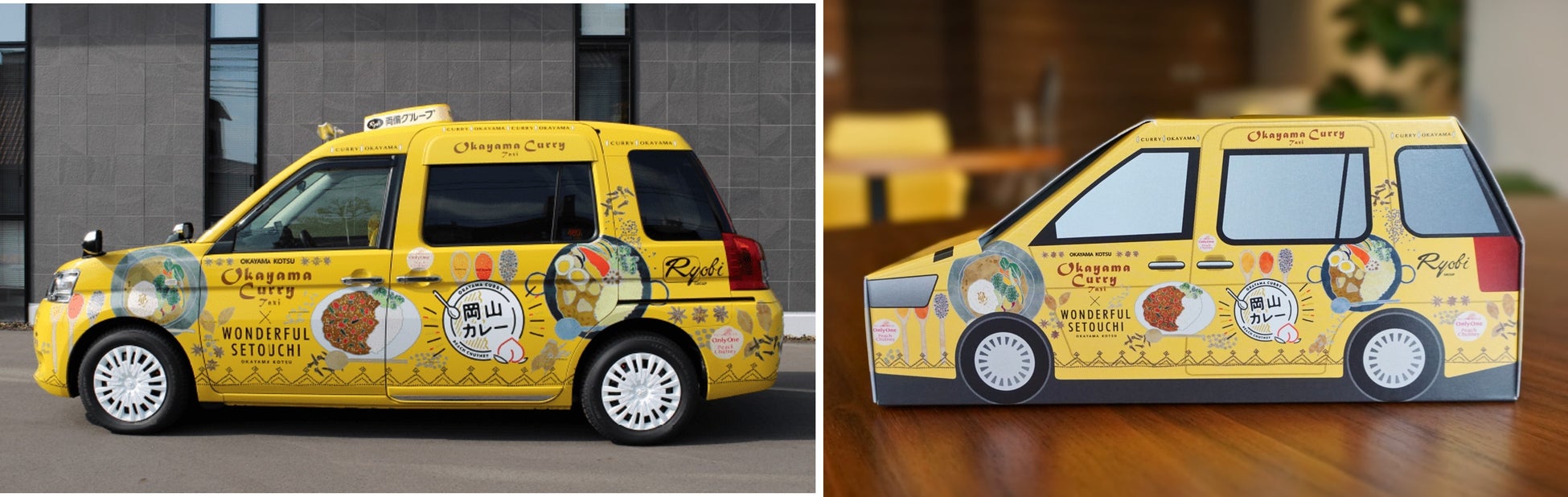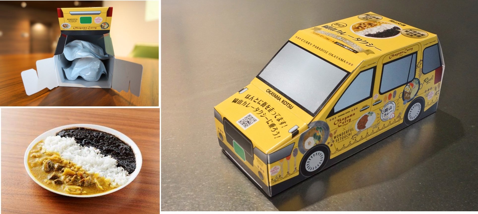 《岡山カレータクシーを模したユニークな形状のパッケージデザイン》