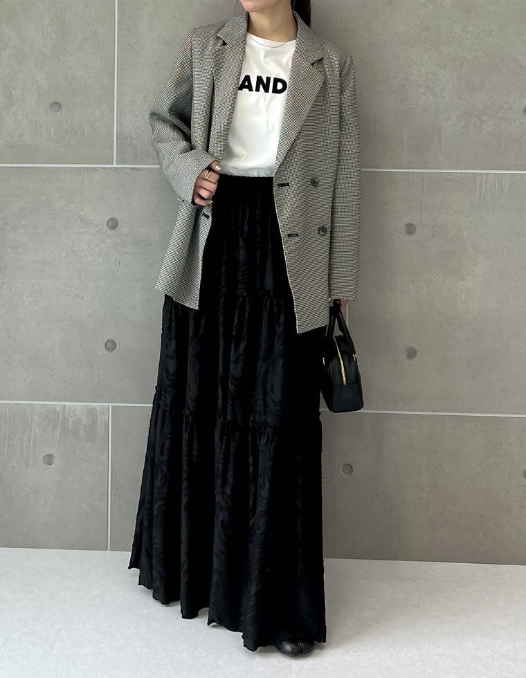 ティアードデザインでありながら、落ち感のあるシルエットが、大人のこなれたスタイリングを叶えます。