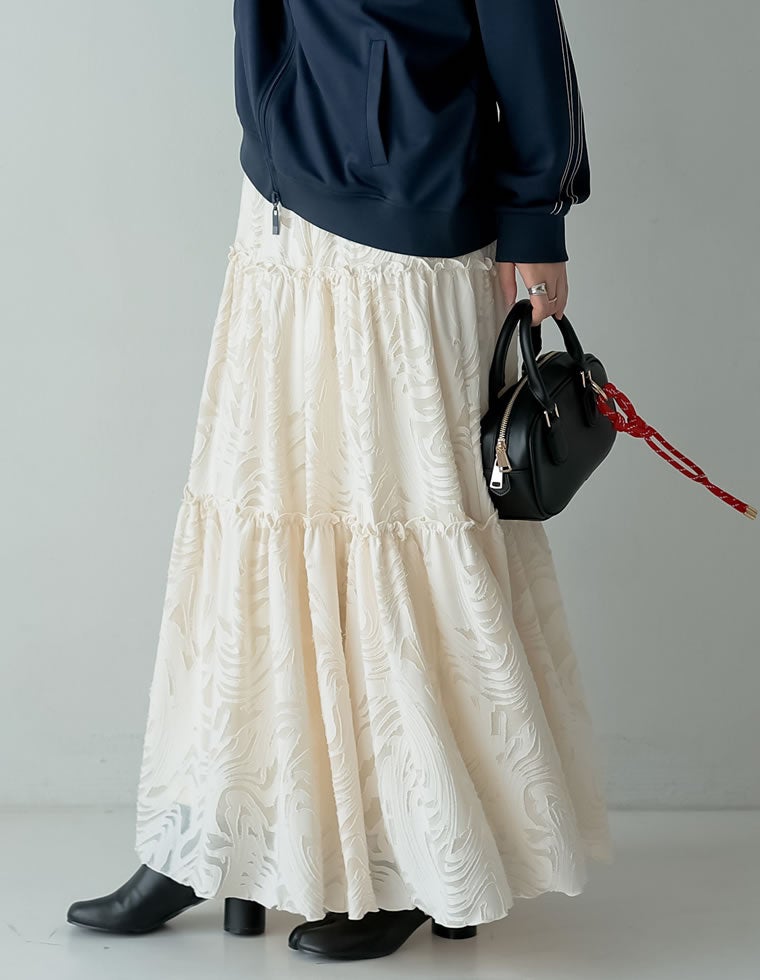 【Re:EDIT(リエディ)】表面変化のある生地が魅力、オパールフリンジティアードスカートが新登場