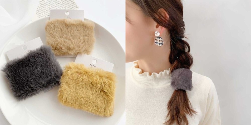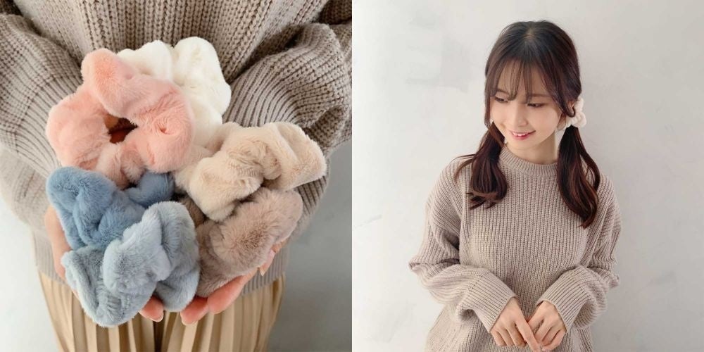 触り心地の良いエコファーのシュシュは、なんと嬉しい2点セット!