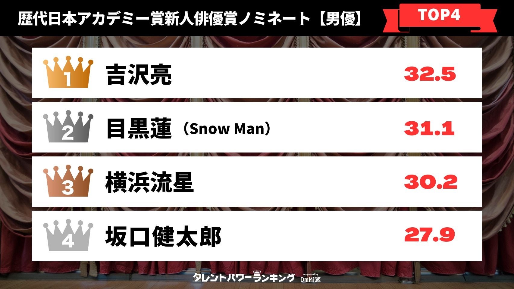今回は、日本アカデミー賞新人俳優賞にノミネートされたことがある歴代の俳優に焦点を当て、パワースコアをタレントパワーランキングで検証しました。