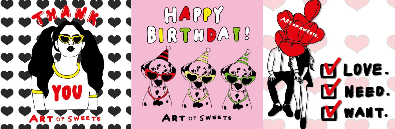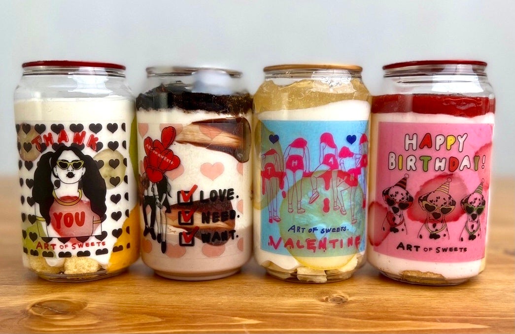 この度のパッケージデザインは、アーティスト マエリカ氏が手がけました。キャンバスであるケーキCANを引き立てるポップでスタイリッシュなデザインが特長であり、“ハッピーバースデー”などのメッセージが込められたデザインは、ギフトとしてもご利用いただけます。