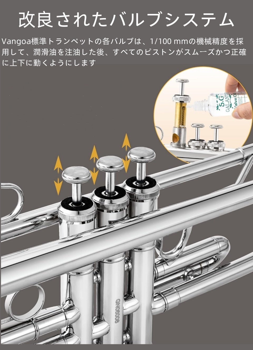 Vangoa は品質と耐久性を重視しています。初心者でもプロの演奏者でも、早期の損傷を恐れることなく、常に真鍮製トランペットの演奏を楽しめるよう保証します。