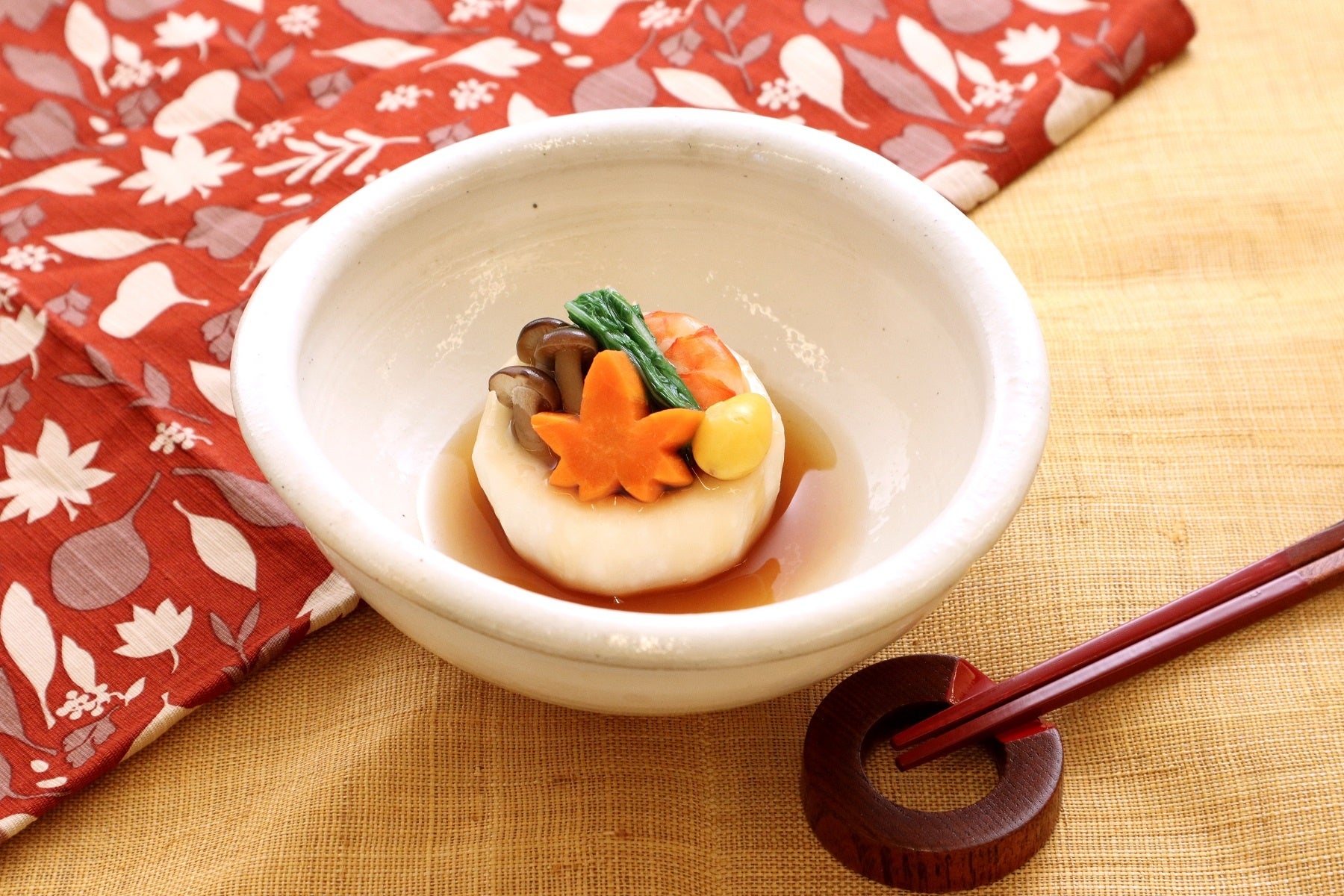 京小蕪を器にみたて、京人参や京水菜など、旬の食材を詰めた蒸し物です。