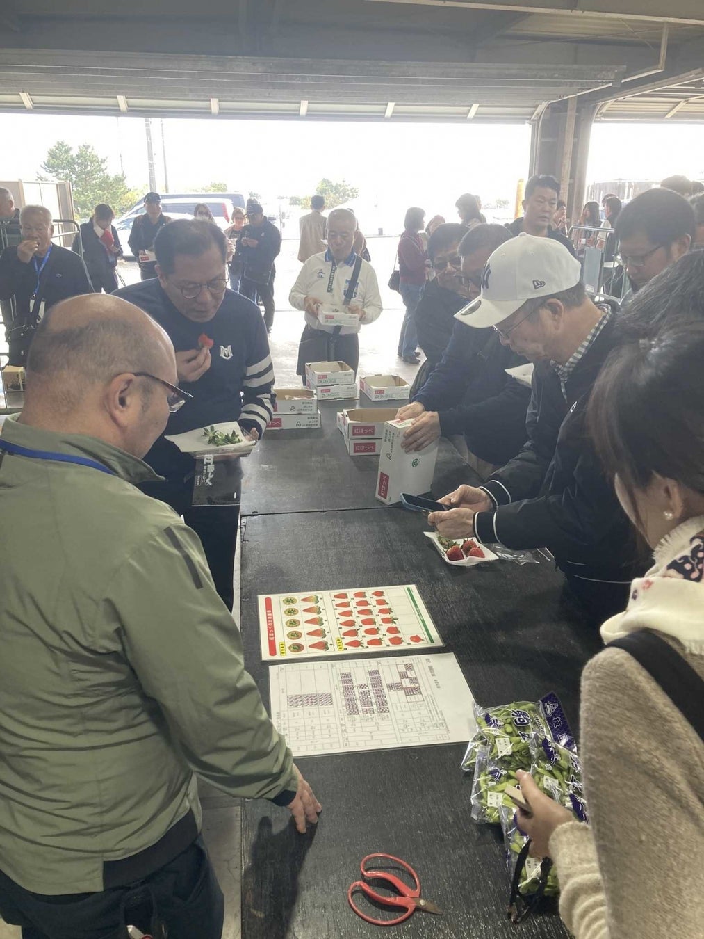 12月11日(月)には、静岡市清水区の石垣いちご農園や集荷施設で試食や、栽培方法及び県内の栽培品種などについて、生産者等から説明を受けました。