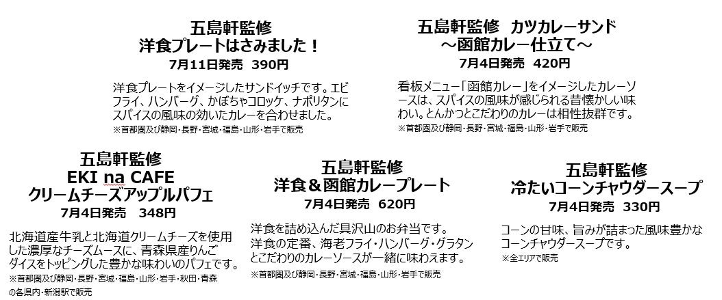 ⑴函館の有名店「五島軒」「あじさい」「美鈴珈琲」とのコラボ商品や、函館のこだわりスイーツなど、函館コラボが大集合!