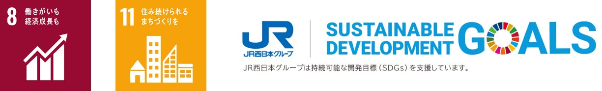 JR西日本ホテルズは、持続可能な開発目標(SDGs)を持ち、地域と共に、お客様一人ひとりの豊かな人生を広げます。今回ご案内の取り組みは、SDGs目標の8番、11番に貢献するものと考えています。