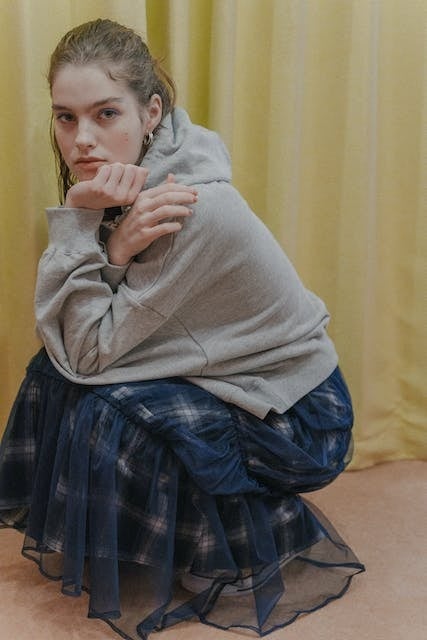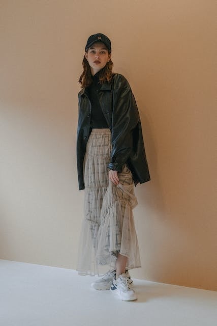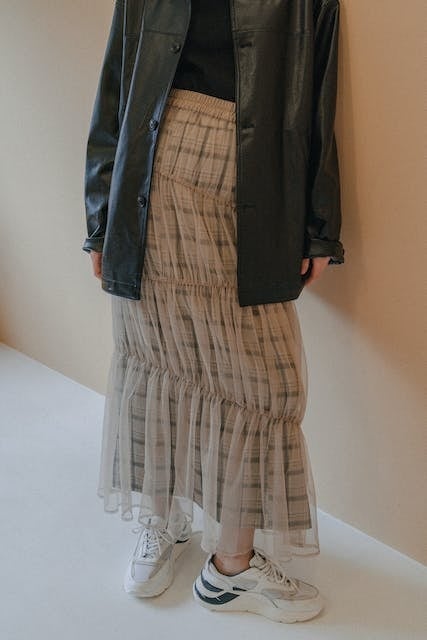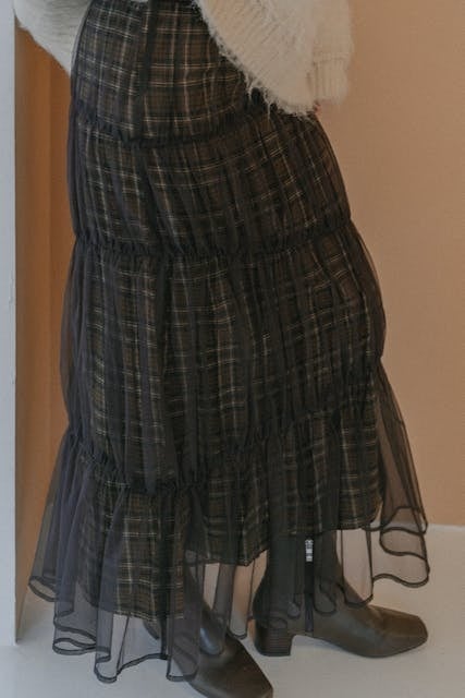 単品でもセットでも使える、チェックスカートとチュールスカートのレイヤードが新しいデザイン。