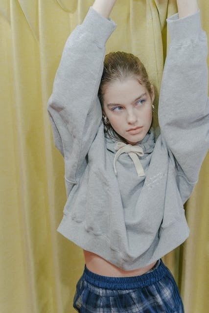 すっきりとした短丈にボリュームたっぷりの身幅・袖のバランスが1枚で可愛く決まる。