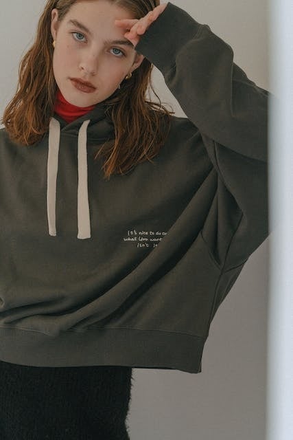 CREDONAで大人気のフーディーのボディにディレクター直筆の胸元の手書き刺繍ロゴを落とし込んだアイテム。