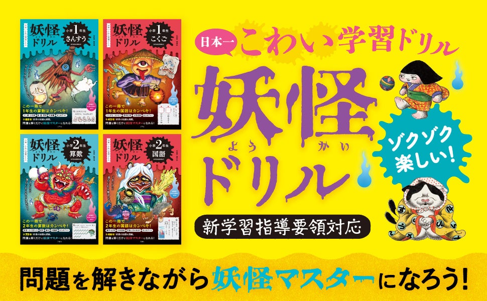 ゾクゾク楽しい! すべての問題に妖怪が登場する、小学校低学年向けの「妖怪ドリル」がシリーズ4冊同時に発売。算数・国語の問題を解きながら妖怪マスターになろう!