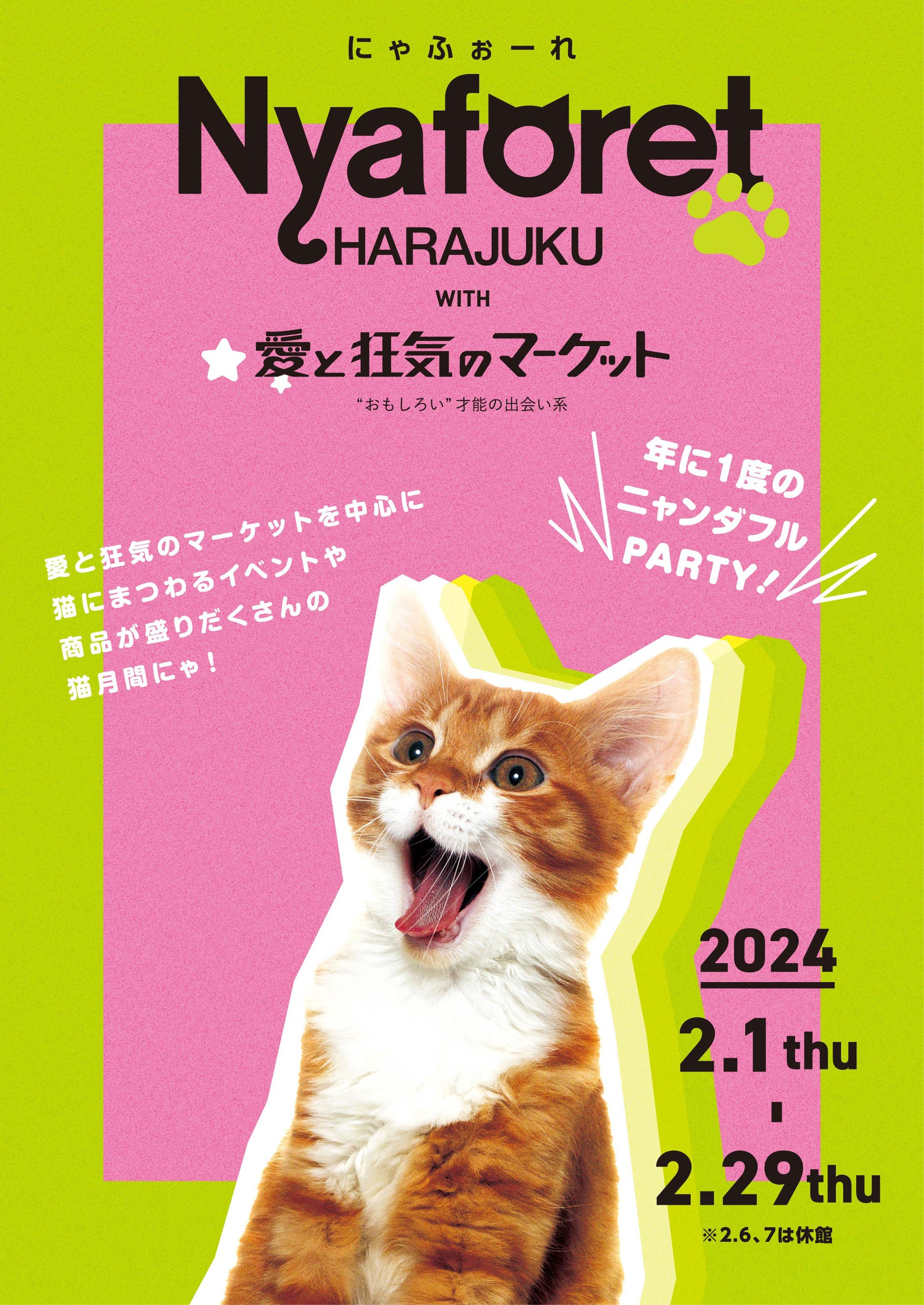 ラフォーレ原宿では、注目ショップや期間限定POP UP SHOPが続々オープンするほか、猫好きにはたまらない企画「にゃふぉーれ with 愛と狂気のマーケット VOL.2」を開催します。