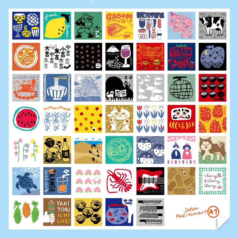 『47 Japan Rediscovery』は、47都道府県各地の特徴や特産品をデザインしたプリントハンカチとタオルハンカチのシリーズ。日本の素晴らしさを再発見し、未来へと繋いでいくきっかけになればという思いを込めて立ち上げた、川辺のオリジナルブランドです。