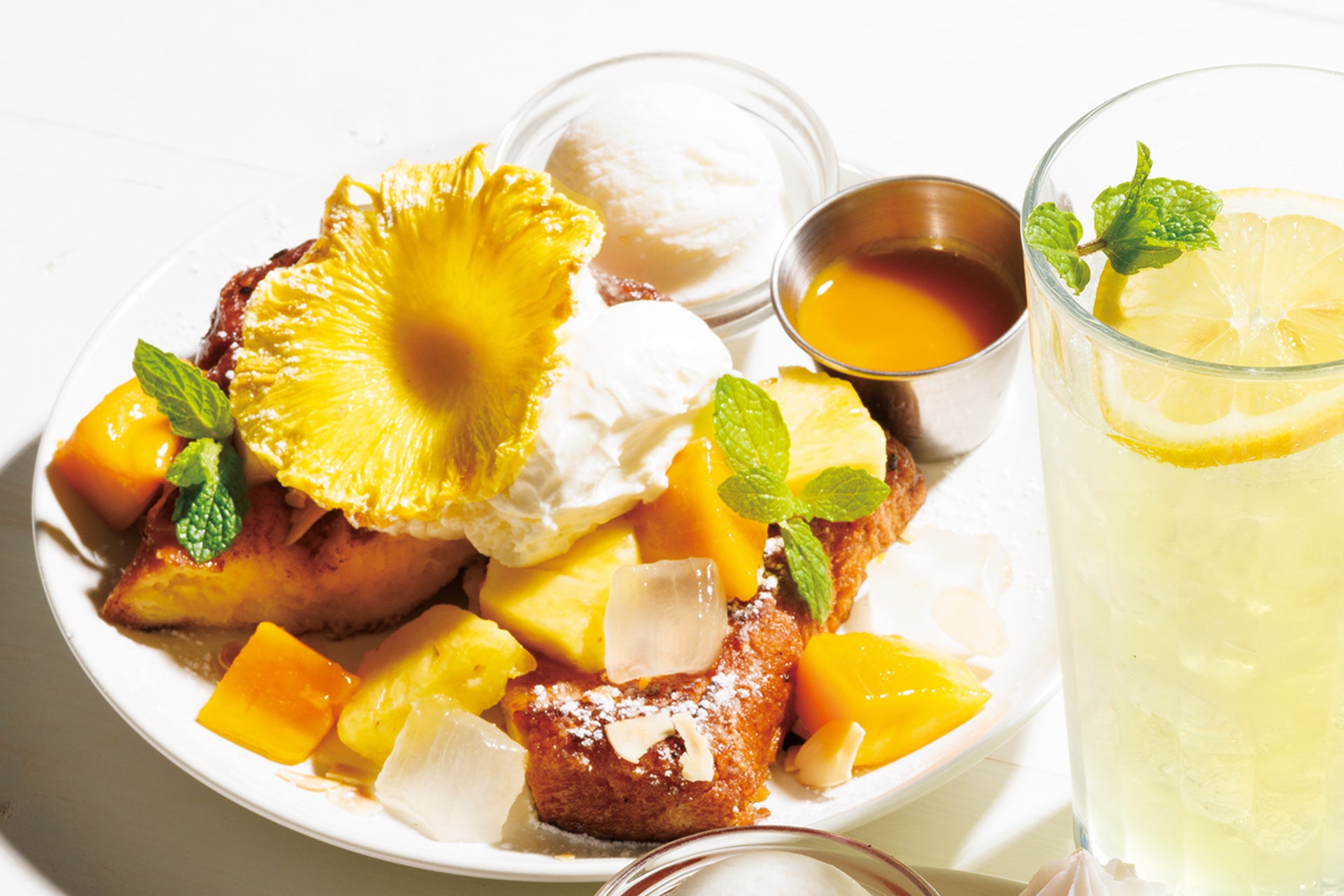 Ivorish 2024年の夏は、華やかなメニュー「トロピカルフルーツ&ヨーグルト」「フローズンピーチフラワー」の2品が夏季限定で登場。暑さ高まるこれからの季節、カラフルで“アツひや”なIvorishのフレンチトーストをぜひご賞味ください。