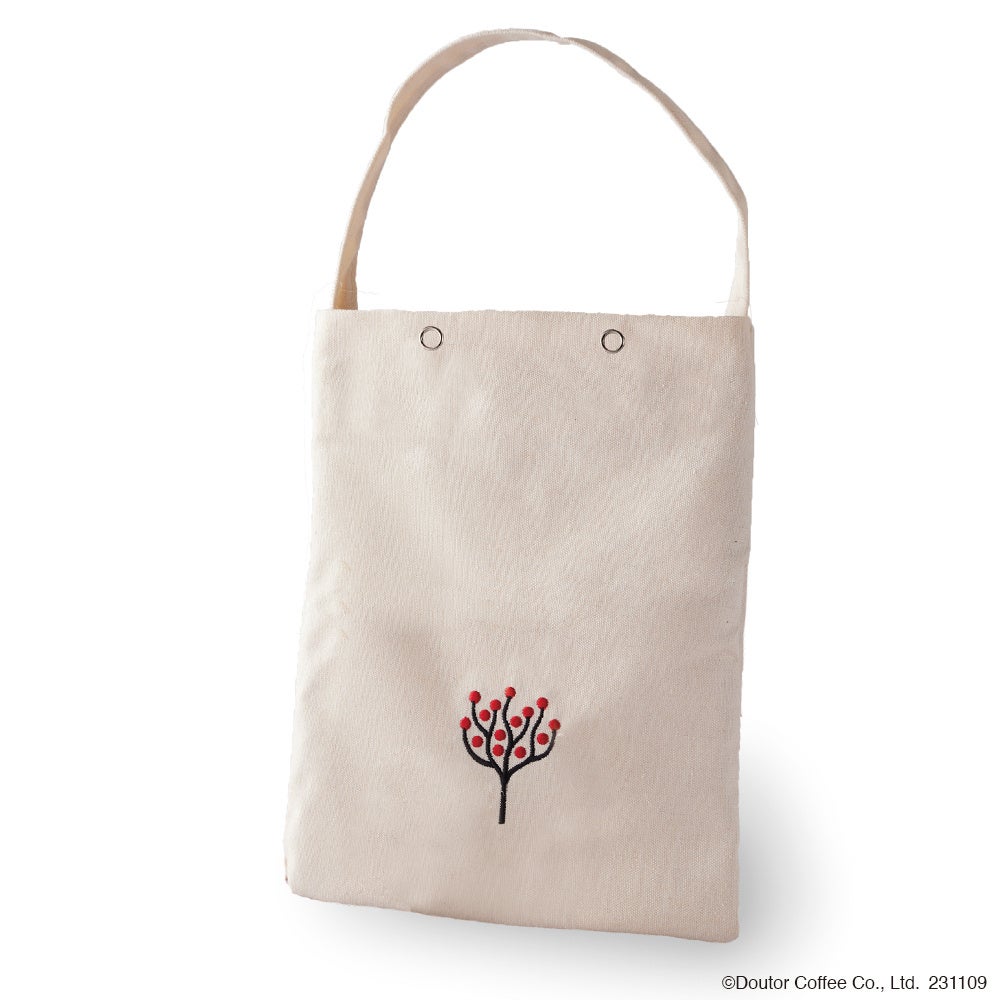 カフェ レクセルシンボルマークのコーヒーツリー刺繍がほどこされたミニバッグ。