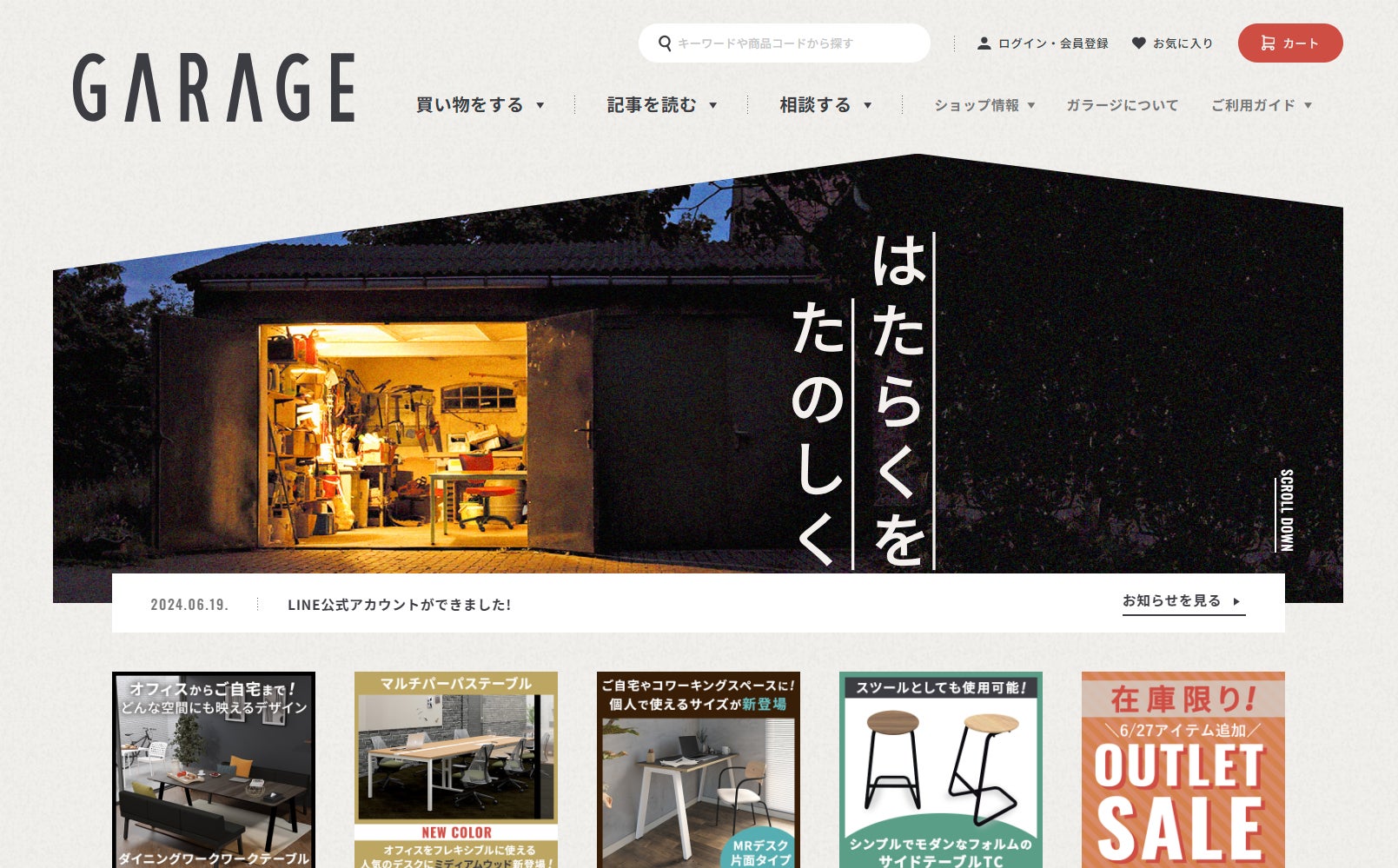2024年に25周年を迎えたプラス様のECサイト「Garage(ガラージ)」は、「はたらくをたのしく」をコンセプトに、約1万点におよぶ機能性×耐久性を追求したアイテムを販売しています。2018年には、旧ECサイトでのWeb解析のしにくさやサイトの管理のしにくさ、業務や作業の煩雑さなど様々な課題を解決するため、複数のECカートの中から最適なEC-CUBEを選択しリニューアルされました。現在は、ECサイトとブランドサイトの顔をあわせ持ち、ECサイトをコアとする実店舗とのOMOをEC-CUBEを活用し実現できたことで、ますます多くのファン顧客を獲得しています。