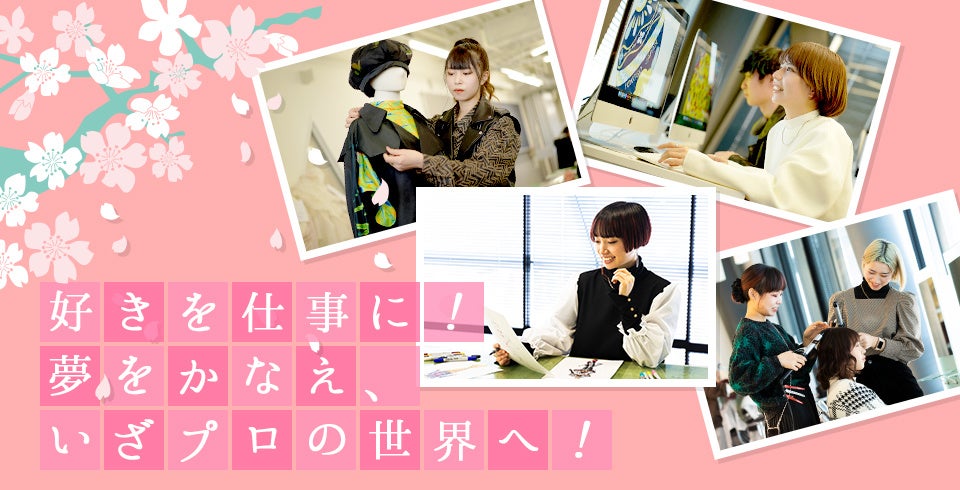 名古屋モード学園は、ファッション・メイク・デザイン分野の専門学校。業界直結のカリキュラムで、ひとり一人の個性を見つけ伸ばし、即戦力を育成。独自の就職支援システムで希望者就職率100%を実現しています。