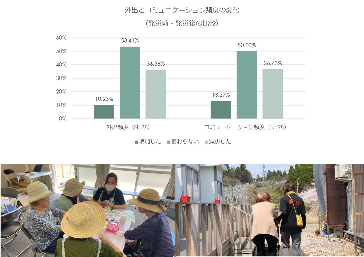 ■約 35%は発災前と比較して外出やコミュニケーション頻度が減少している。