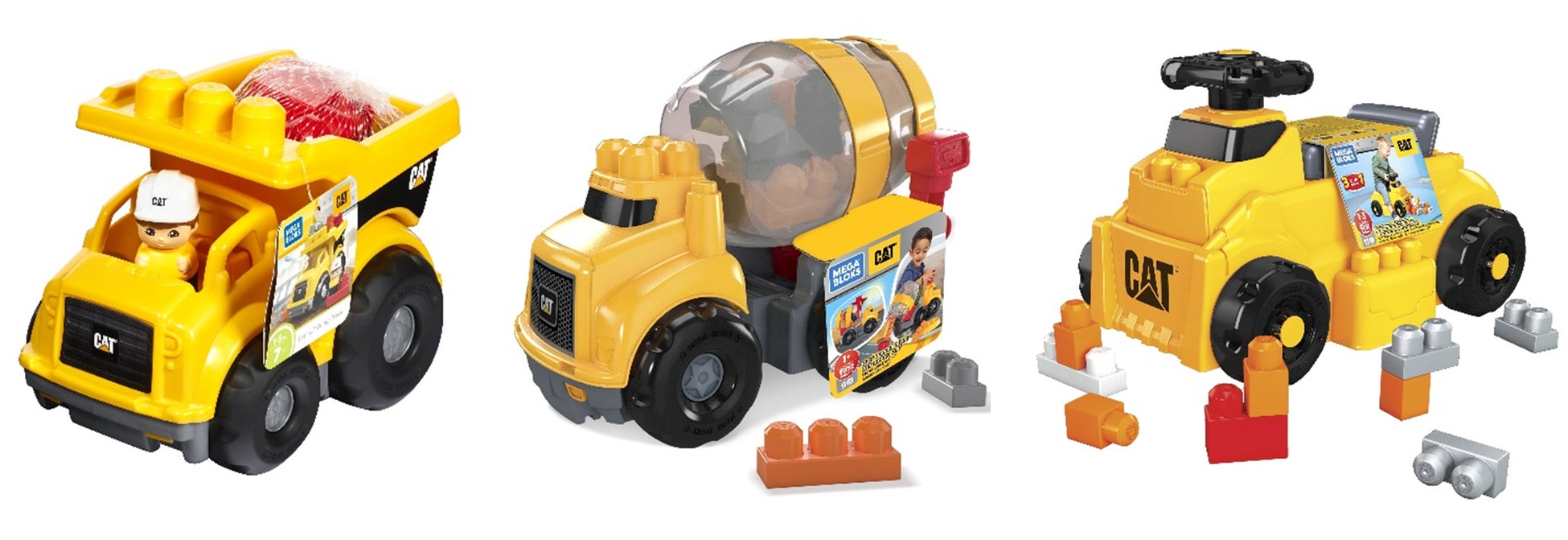1才からのメガブロックからはたらくくるまで有名なCATシリーズが新発売!~メガブロックをはたらくくるまにつんで、運んで、乗って遊べる!~