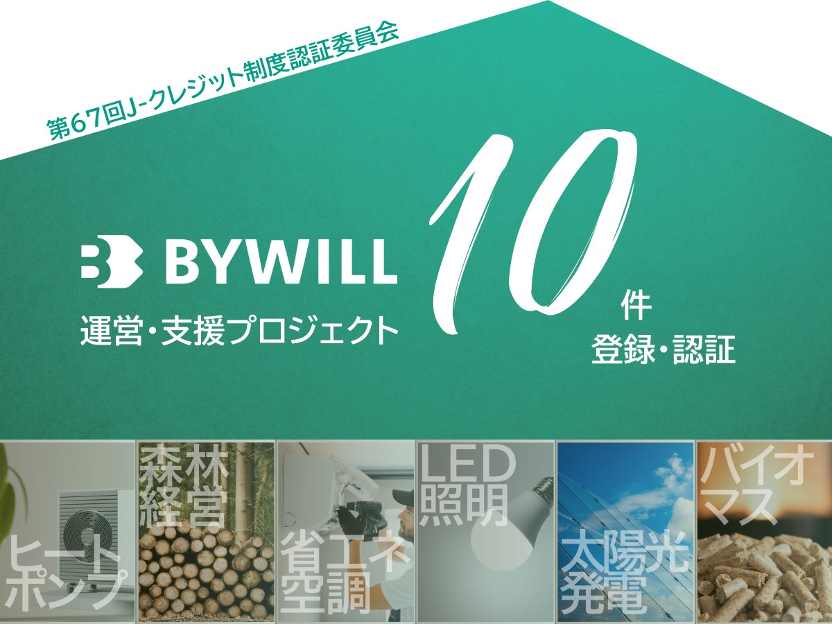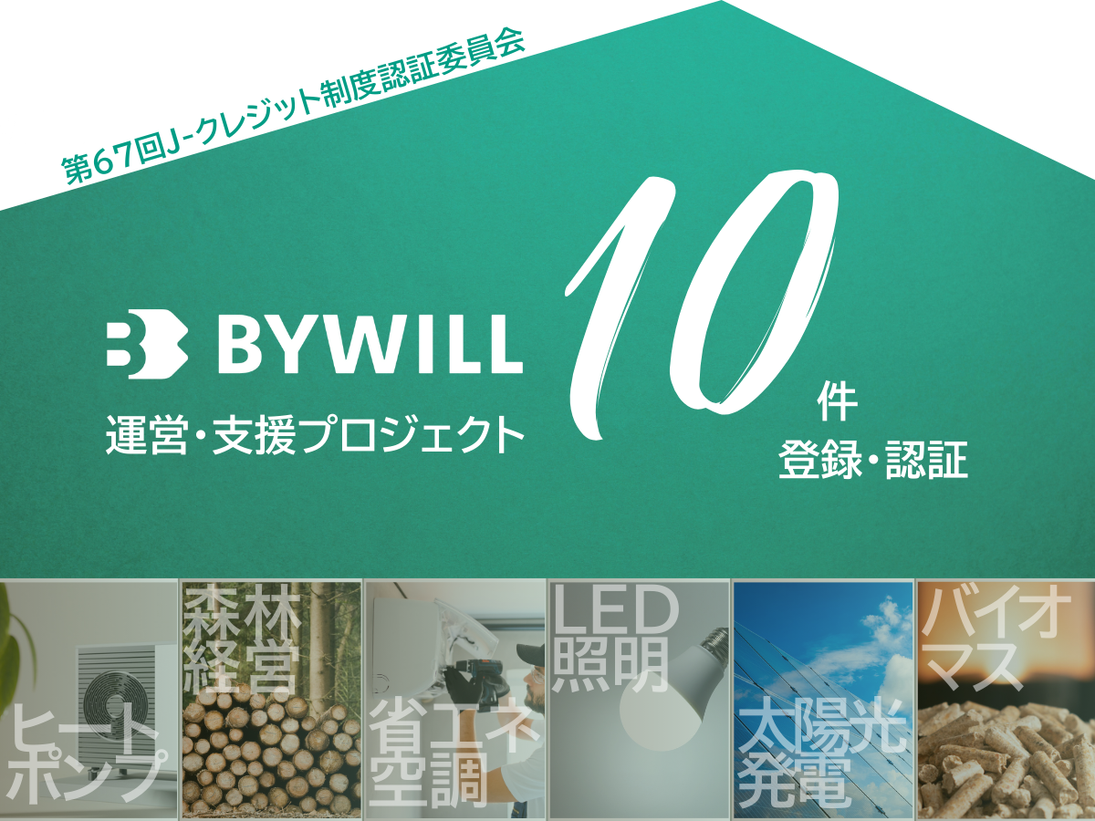 第67回J-クレジット制度認証委員会にて、バイウィルが支援・運営するプロジェクト計10件が登録、認証