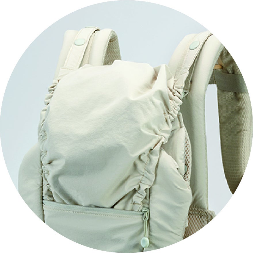 創業約90年という歴史の中で培ったLUCKY industriesの高い技術に、GLRの洗練されたデザインを融合させることで、ファッション性、機能性などを兼ねそろえた新しい抱っこ紐です。開発に際し、GLRのママ・パパスタッフが集まり、以下のポイントを反映させました。