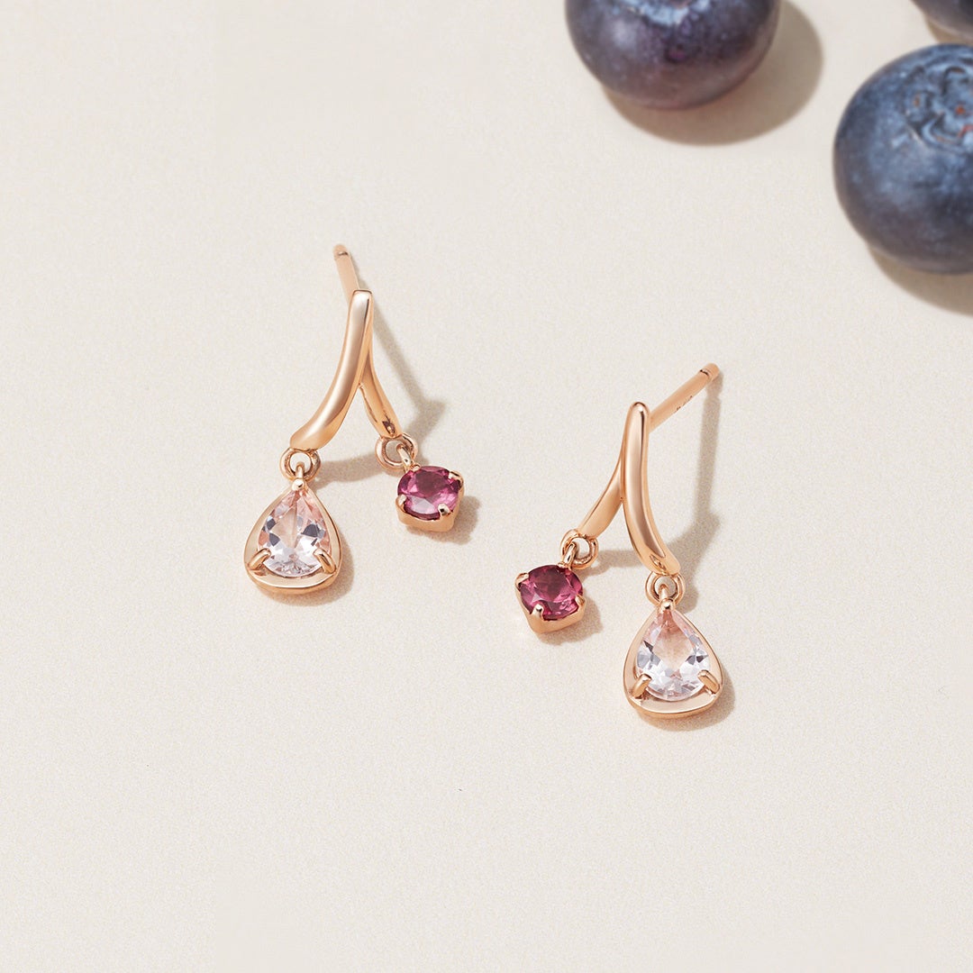 K10PG Pierced Earrings / Morganite / Rhodolite Garnet ¥39,600