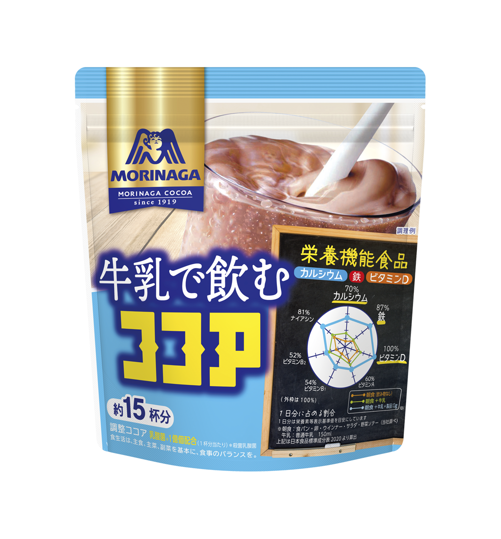 1杯で1日の1/2量※のカルシウム、鉄、ビタミンDが摂れる栄養機能食品「牛乳で飲むココア」で、お客様のウェルネスライフをサポートしてまいります。
