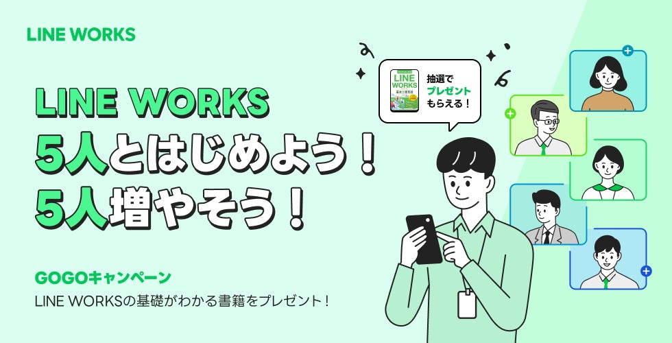 ビジネス現場のコミュニケーションツール「LINE WORKS」を提供するワークスモバイルジャパン株式会社(本社:東京都渋谷区、代表取締役社長:増田 隆一、以下 ワークスモバイルジャパン)は、5人以上で「LINE WORKS」フリープランの利用を開始した企業・団体、またはすでに「LINE WORKS」フリープランをご利用中で5人以上のアカウントを追加登録した企業や団体を対象に抽選で書籍含むオリジナルギフトセットをプレゼントする「5人とはじめよう 5人増やそう GOGOキャンペーン」を2023年11月13日(月)より開始いたします。