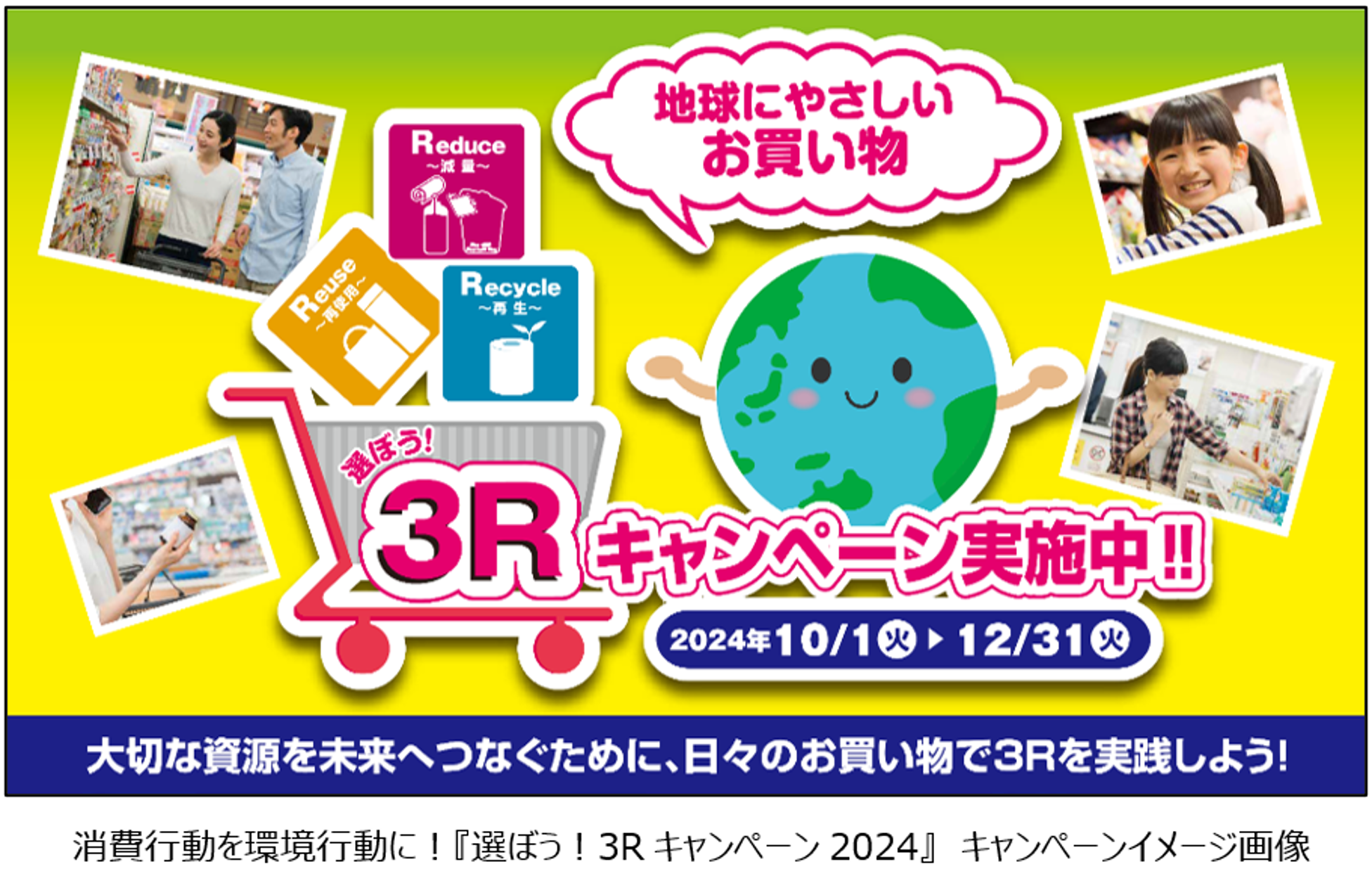 この取組は、消費者一人ひとりが、お買物を通じて3R※1や資源の大切さを認識・共感し、日頃の消費行動(商品選択)へ結びつけてもらうことを目的としたキャンペーンです。