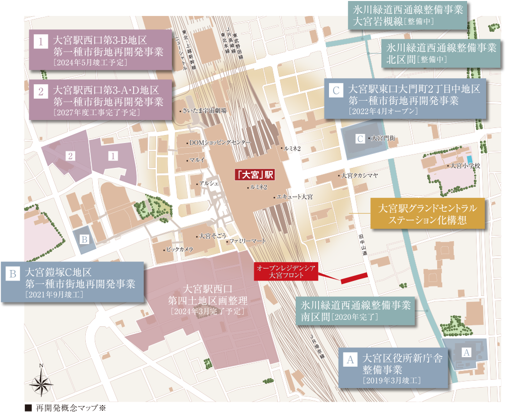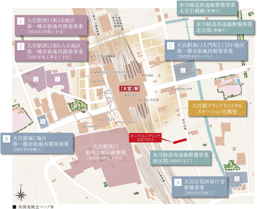 大宮駅周辺は再開発が進み、今後さらなる発展が見込まれるエリアです。ぜひお気軽にお問い合わせ、ご来場くださいませ。