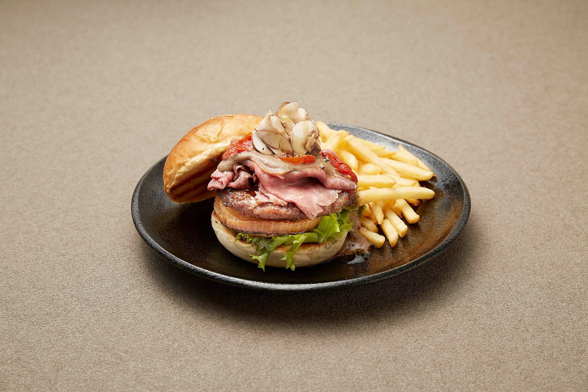 ジューシーな島根和牛のパティに、風味豊かなマッシュルームとセミドライトマトを加えたローストビーフバーガーです。ボリューム満点でありながら、上品な味わいが楽しめる一品です。