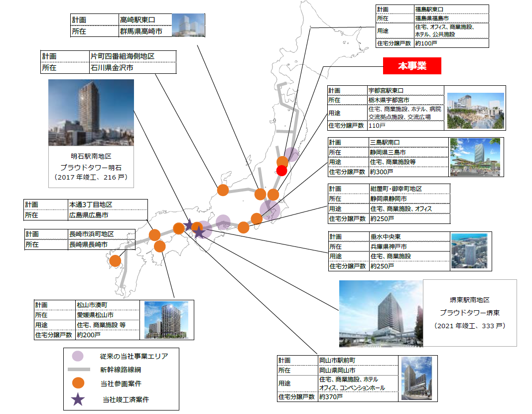 <野村不動産の首都圏エリア以外の主な再開発事業(推進中含む) 2022年2月時点>